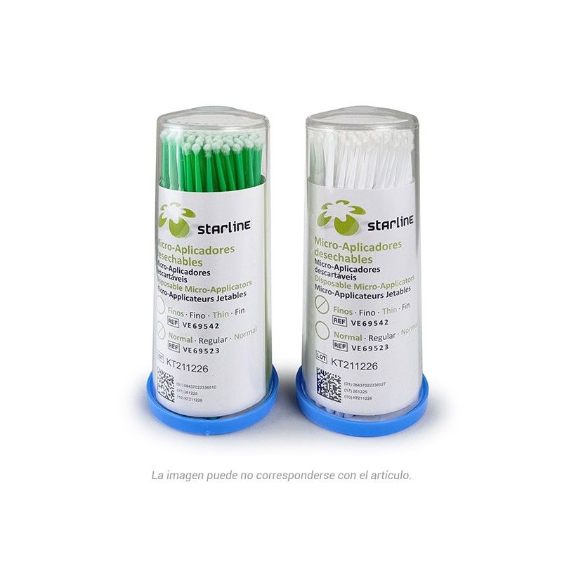 Bastoncillos micro-aplicadores desechables no absorbentes con forma esférica. Envase dispensador de 100 unidades.FINO